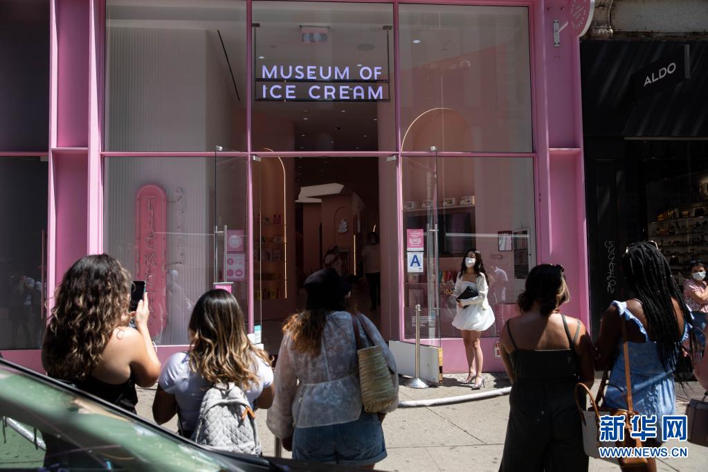 5月19日,人们在美国纽约冰淇淋博物馆外拍照。