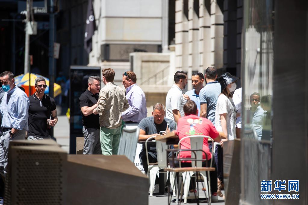 5月19日,人们在美国纽约街头聚集聊天。