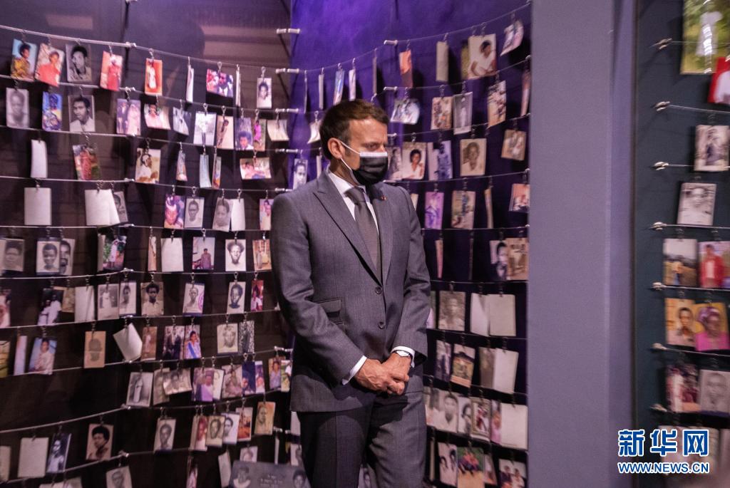 5月27日,法国总统马克龙在卢旺达首都基加利参观基加利大屠杀纪念馆。
