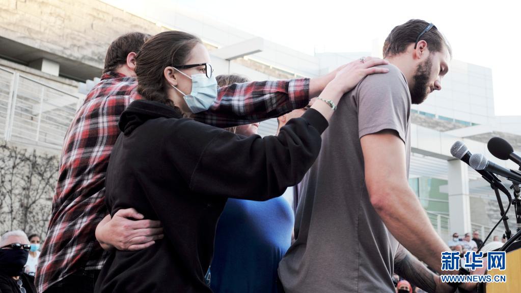 5月27日,遇难者亲属在美国加利福尼亚州圣何塞市政厅广场参加悼念仪式。