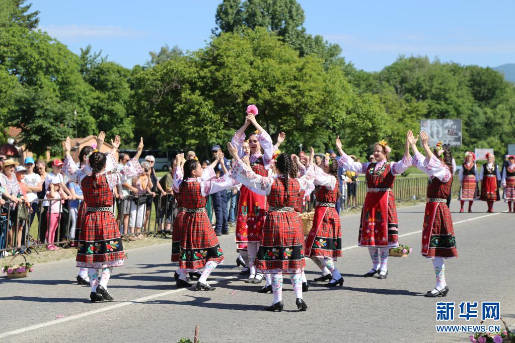6月6日,在保加利亚卡赞勒克,人们在玫瑰节采摘仪式上表演。