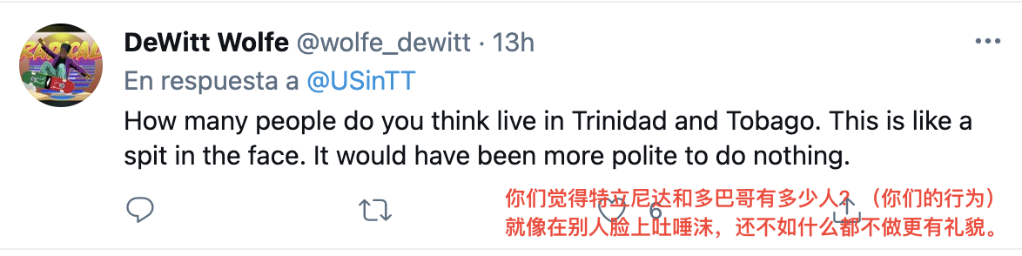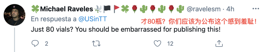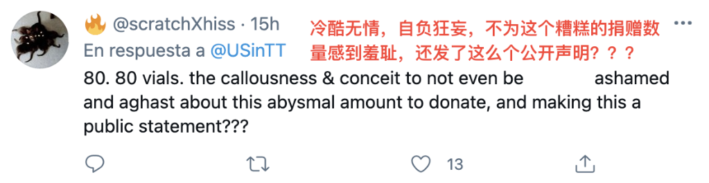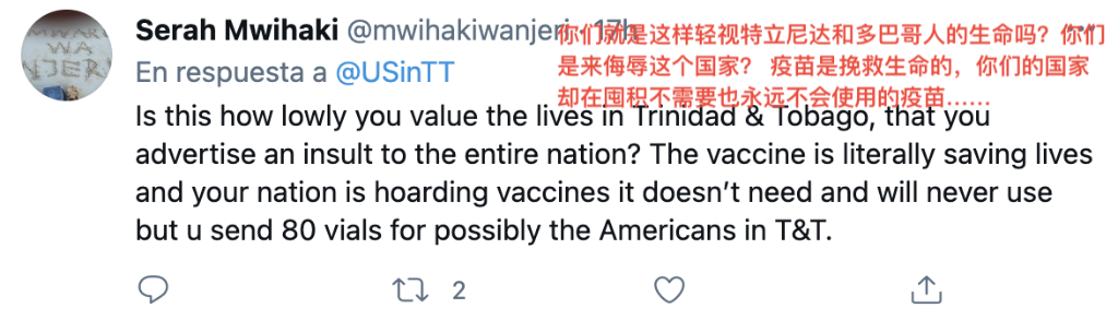 很多网民更是直白地表达了对美国轻视他国人民生命的不满,表示这次向特多的捐赠不如说是一种“侮辱”。