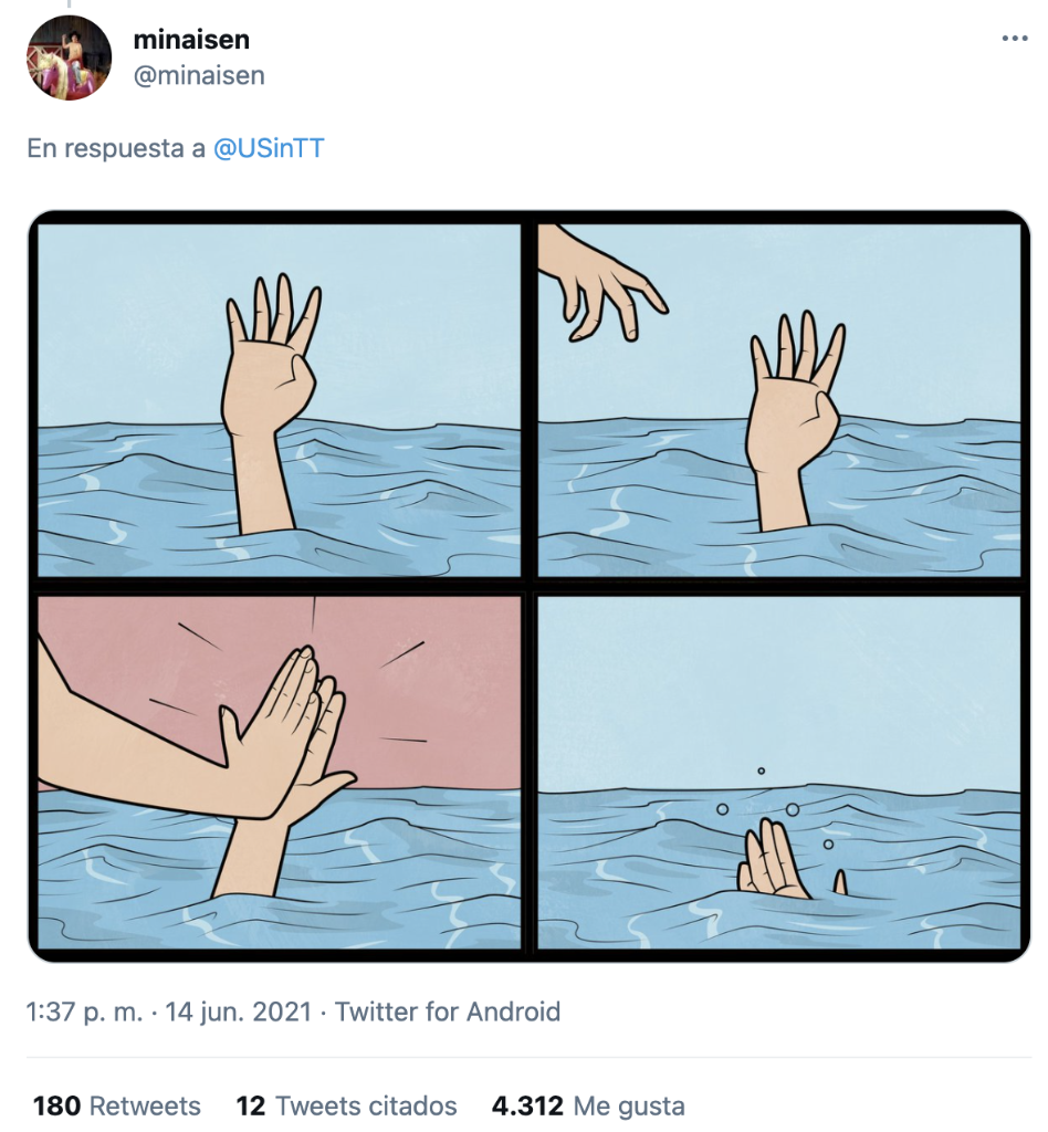 这组漫画是一名外国网友在美国驻特立尼达和多巴哥大使馆社交媒体账号下的留言,没有一字一句,却得到近200次转发和4300多次点赞。