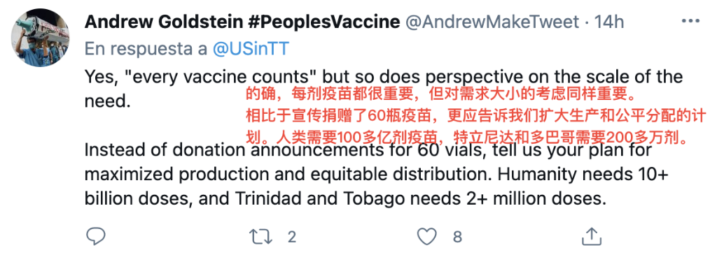 愤怒之余,也有一些网民将矛头对准美国“疫苗民族主义”、全球疫苗分配不公等深层次问题。