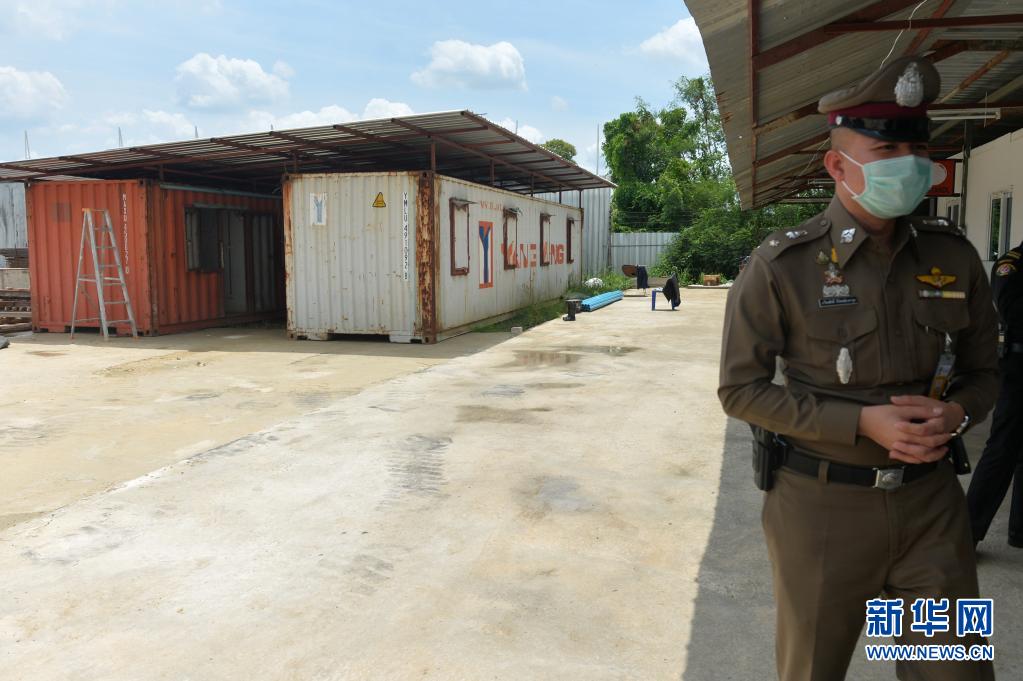 6月29日,一名警察在泰国曼谷一检查点执勤,防止建筑工人离开。新华社发(拉亨摄)