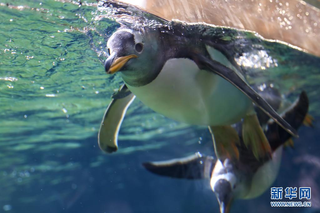 这是7月5日在比利时布吕热莱特的天堂动物园拍摄的巴布亚企鹅。