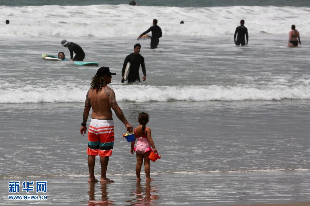 7月10日,人们在美国加利福尼亚州洛杉矶威尼斯海滩避暑。