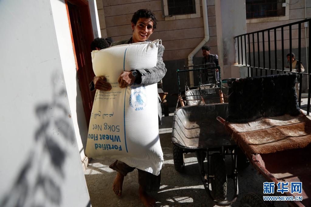 2020年2月11日,一名男子在也门萨那领取救济粮食。