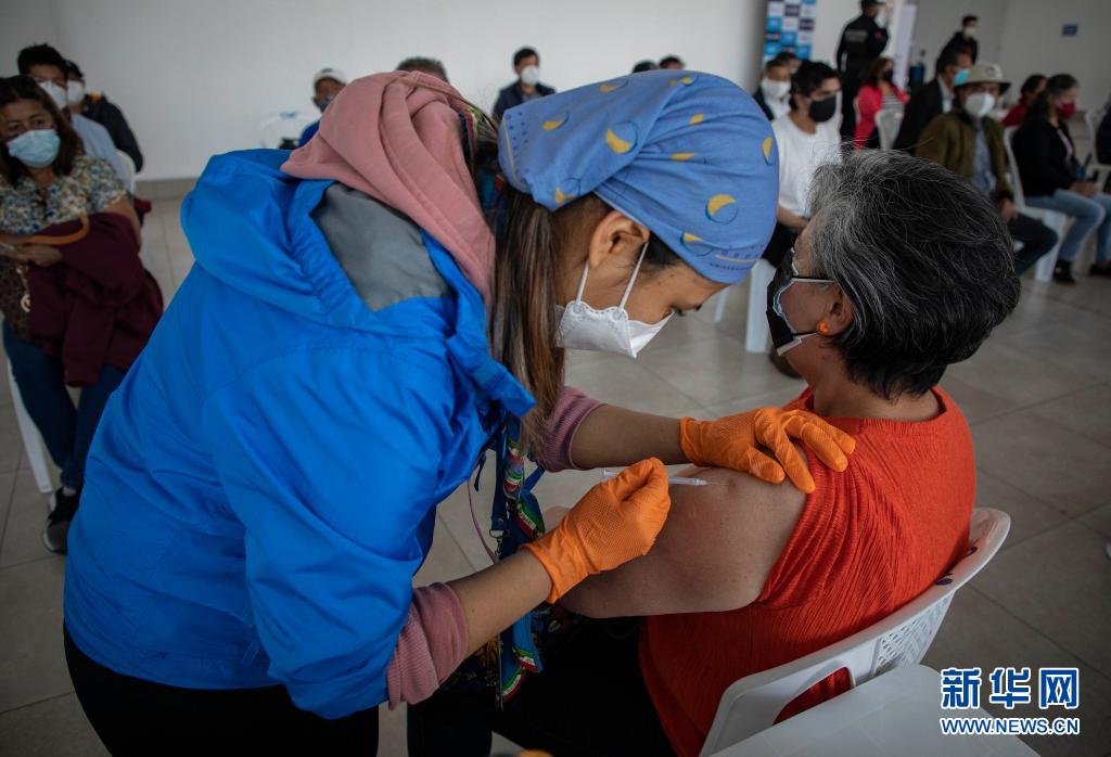 7月12日,医务人员在厄瓜多尔首都基多一处疫苗接种点为民众接种疫苗。
