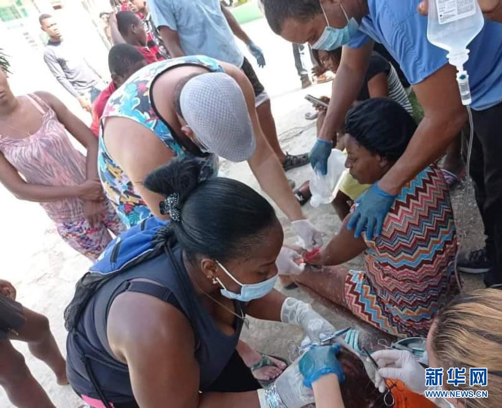 这张由古巴外交部提供的照片显示,8月14日,古巴医疗队在海地莱凯救助地震后的伤员。