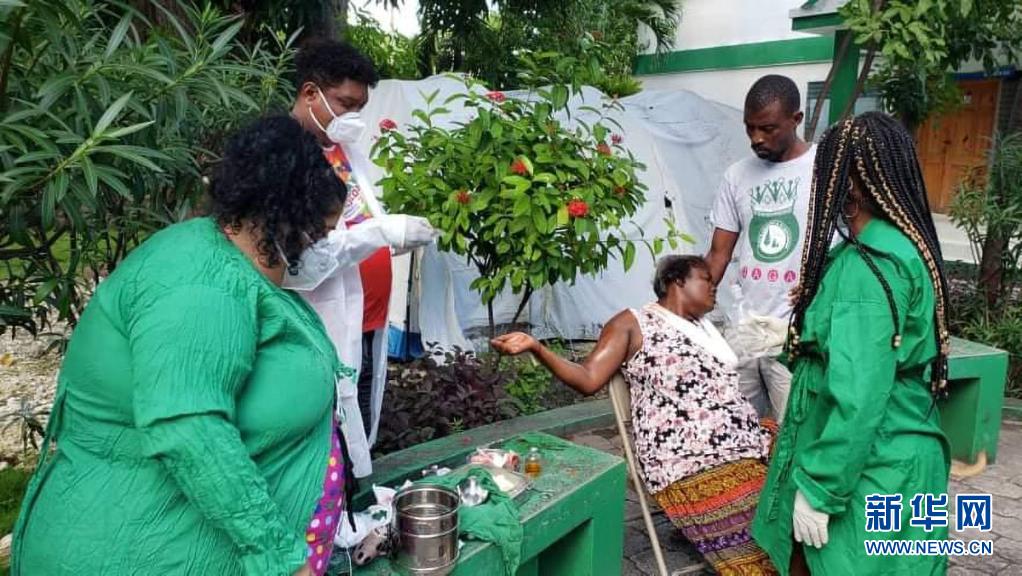 这张由古巴外交部提供的照片显示,8月14日,古巴医疗队在海地莱凯救助地震后的伤员。