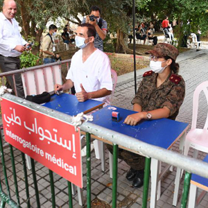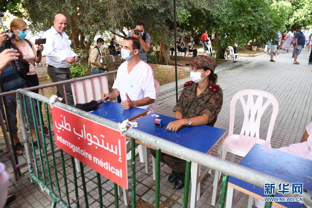 突尼斯当日为18至39岁民众集中接种新冠疫苗。