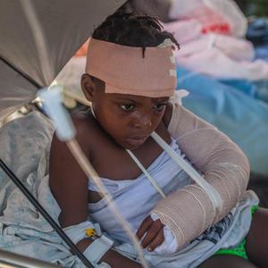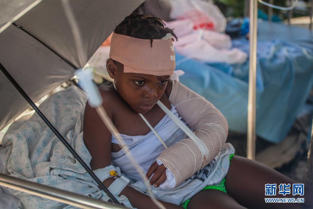 8月15日,一名受伤儿童在海地莱凯接受治疗。