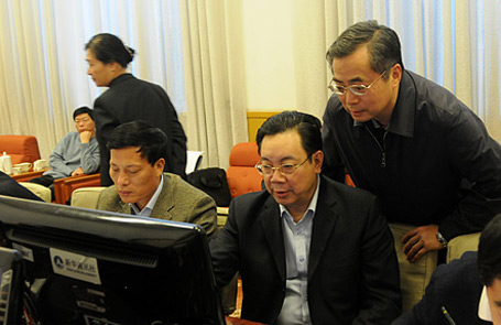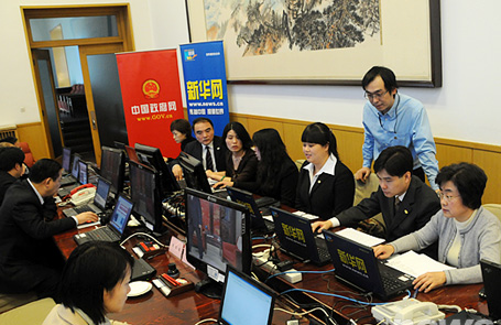 新华网、中国政府网工作人员在报道现场