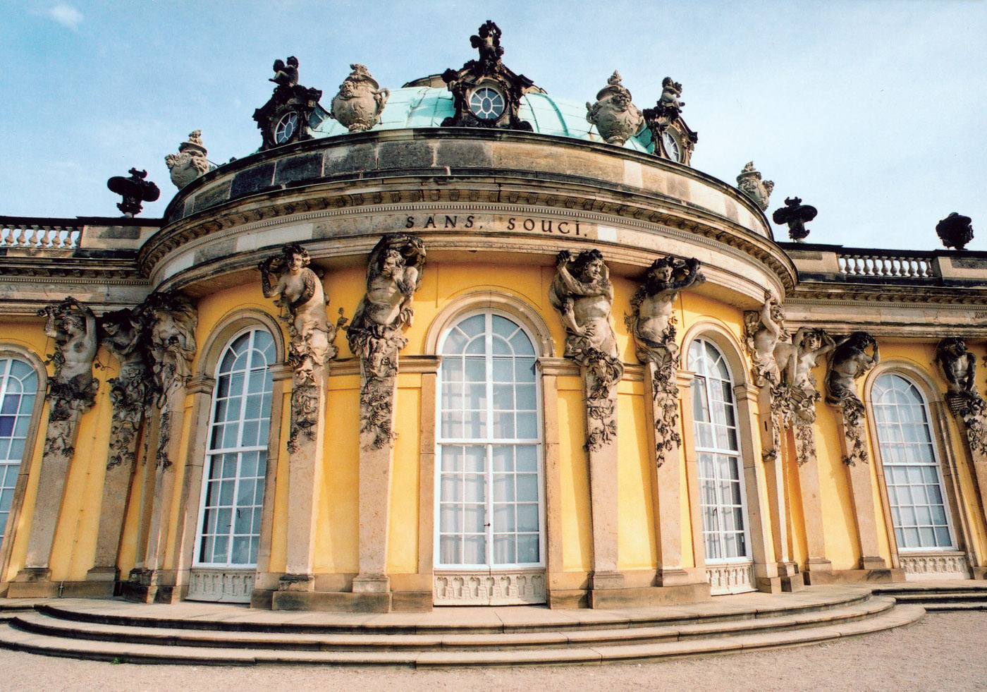 当然还有建筑,无论是战后加了玻璃穹顶的柏林帝国议会大厦,还是双塔高耸入云的科隆大教堂,都令人赞羡不已。时任新华社柏林分社社长的黄泳,在送代表团赴法兰克福的路上,还陪同我们顺访了勃兰登堡州的首府波茨坦,那里是德意志昔日的皇宫。方圆290 公顷的皇家园林里,有普鲁士国王腓特烈亲自设计的夏宫“无忧宫”,有夏洛腾豪夫城堡和奥兰捷利行宫,大树参天的园林深处是堂堂威势的新皇宫,廊柱巨大、雕塑众多的巴洛克式宫殿里,装饰奢华的厅堂卧室多达200 余间。