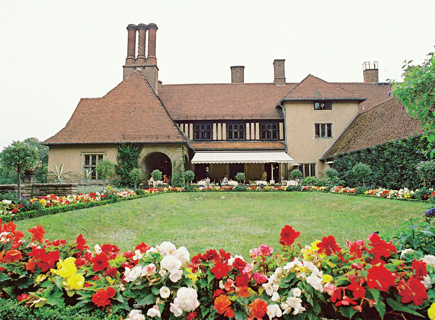 波茨坦还有处历史建筑值得一看,就是因举行过第二次世界大战结束前的波茨坦会议而闻名的采茨利恩豪夫宫。这幢临湖而建的别墅,是英式乡村风格的宫邸,霍恩索雷伦家族的末代王子威廉及其家人曾居住于此。1945 年7 月17 日—8 月2 日,美、英、苏三国首脑选择了柏林西南郊这座没有被盟军飞机炸毁的豪宅,共商对德国的战后处理以及使日本投降的对策。当年罗斯福、丘吉尔、斯大林聚首的会谈室,如今仍按原样保存着,供游人参观。我还很少见过这样美轮美奂的大房子,采茨利恩豪夫宫不仅内部装饰精致,而且外檐设计也别具匠心,特别是房前屋后的圆形苗圃,更似给这幢乡间别墅装饰了华丽的花环。