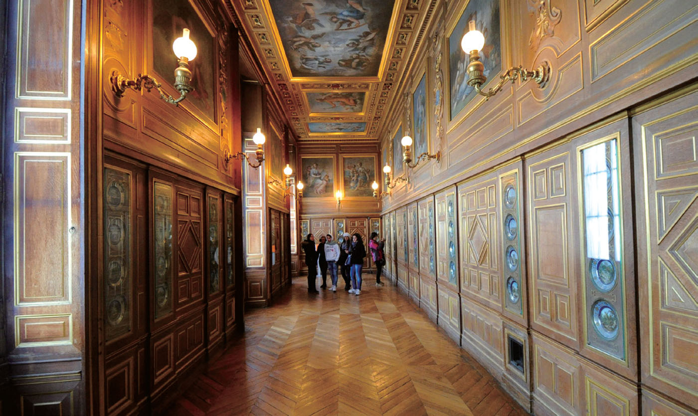 有新华社巴黎分社社长郑春陪同,参观枫丹白露博物馆那天,馆方特意请我们看了一个平日不大开放的展室。这个房间在行宫一楼,一扇不起眼的小门,似乎从没有观众光顾,显得门庭冷落。谁知推门亮起灯,里面却别有洞天,一派金碧辉煌。