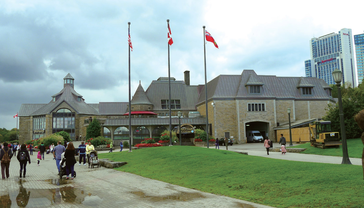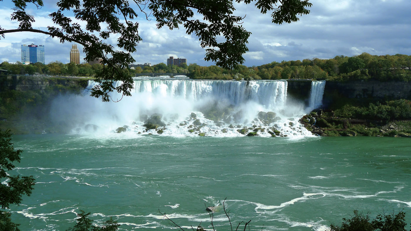 这个有着“世界七大奇景之一”美誉的瀑布,位于北美洲五大湖区的尼亚加拉河上,尼亚加拉印第安语意即雷神之水。尼亚加拉河自伊利湖流至安大略湖,从距伊利湖北岸32 千米起河道变窄,一川碧水从石灰岩崖壁上骤然砸落,形成落差51 米的尼亚加拉瀑布。其巨大的水流以银河倾倒之势冲下断崖,声及数里之外,场面气势磅礴,震人心魄,“飞流直下三千尺,疑是银河落九天”用在尼亚加拉大瀑布上一点儿也不过分。