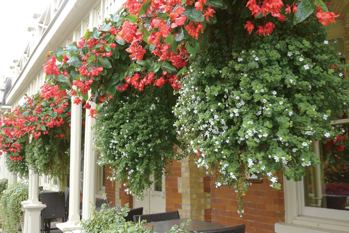在普吉岛的珍珠村饭店,早餐的花园餐厅面对椰树环绕的一池碧水。让人称奇的是攀援植物缀编成团团簇簇的鲜花屋顶,远远看去像层烧红的早霞。