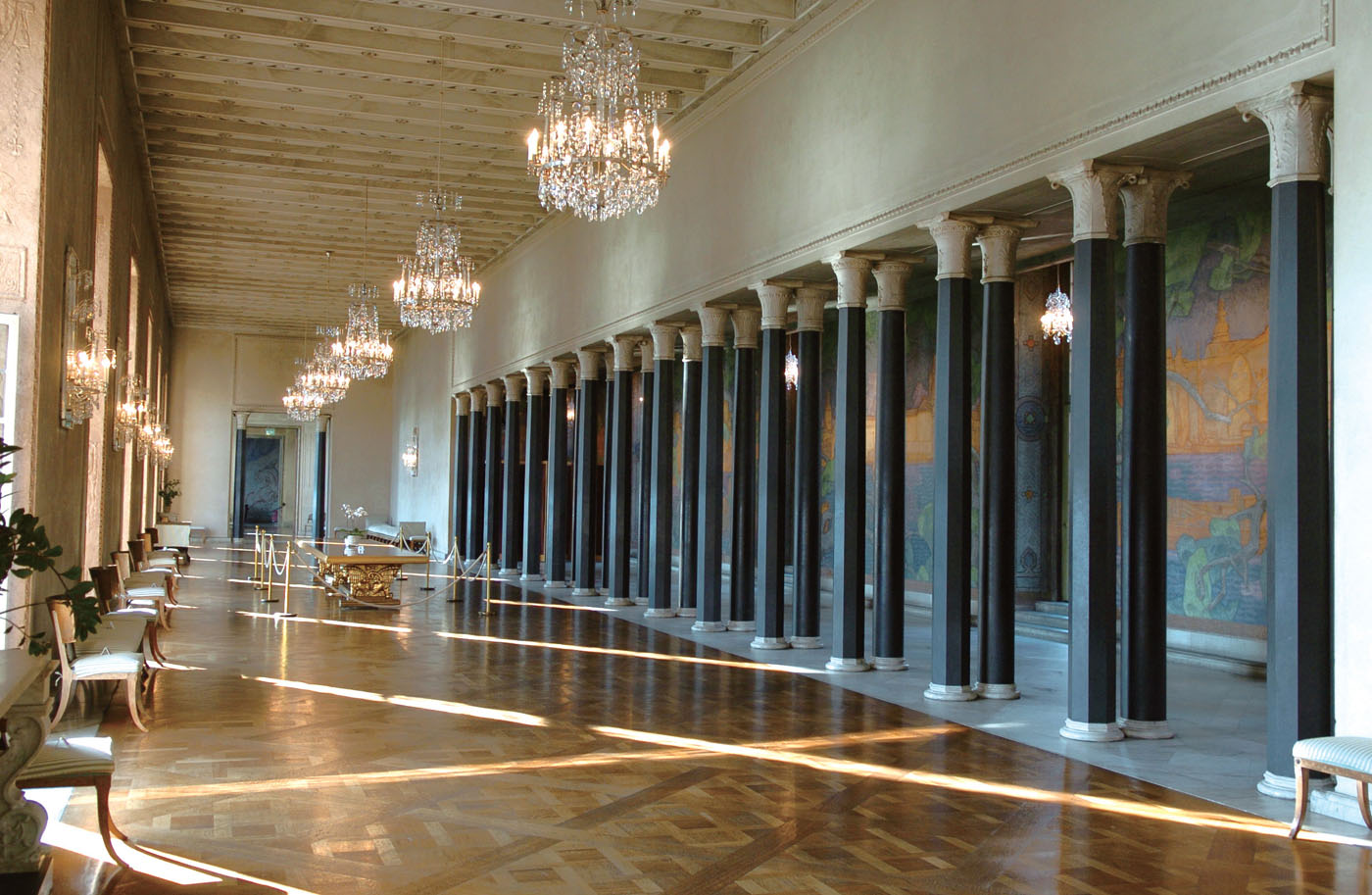 我们带着几分惊讶,在这座超大建筑里走马观花地看了一遍。我总结一是大厅多,二是走廊长。27 个大小不同的厅构成了一道独特的风景线,宫内大厅多数是以罗马尼亚历史人物的名字命名。椭圆型的二楼会议厅富丽堂皇,顶部是天窗式玻璃穹顶,极尽奢华。还有给人印象深刻的中央大厅,面积2200 平方米,是仿照奥地利的皇宫设计的。厅内装饰气派非凡,四周墙壁和天花板镶有精制的木雕。屋顶高达16 米, 3 盏大吊灯每盏3 米长,在天花板上犹如闪烁的群星,站在这样的星空下,人显得多少有点儿渺小。面向广场一侧的走廊长150 米,宽18 米,和无数巨大的露台相通,我们几个中国人在里面穿过,竟有走在一条宽敞的大街上的感觉。