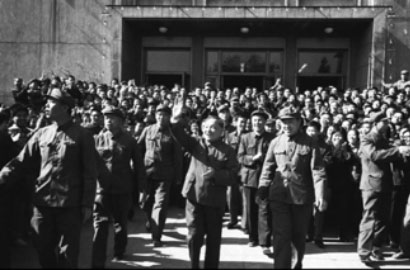 1956年4月2日,毛泽东、刘少奇、周恩来、邓小平、彭真等中央领导同志接见新华社国内分社会议全体代表。