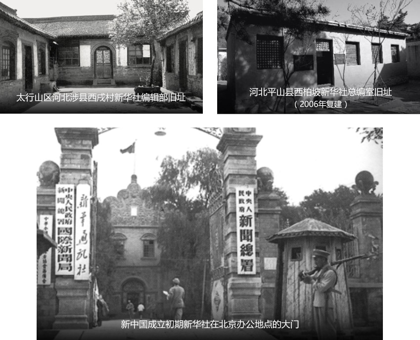 解放战争时期,新华社事业迅速发展。根据党中央“全党办通讯社”的精神,1946年5月,新华社、解放日报社进行改组,改组的重点是加强新华社,改组后新华社的业务力量大大加强,很快成为党的宣传工作的重心。1947年3月,中共中央从延安撤出后,总社留小部分人员组成代号“四大队”的工作队,跟随党中央和毛泽东转战陕北;大部分人员转移到河北省涉县坚持工作。1948年6月,两支队伍在河北平山县会师。1949年3月,总社随党中央进驻北平香山,9月迁入国会街26号(今宣武门西大街57号)。从1947年3月中共中央机关报《解放日报》停刊后,新华社担负起中央机关报、通讯社和广播电台的任务,成为党中央指导全国革命斗争的重要舆论工具。这一时期,毛泽东等中央领导人为新华社撰写了大量新闻作品,包括消息、评论、社论、声明、发言人谈话、广播讲话等,其中很多成为新闻史上的名篇。在各个解放区,新华社地方分支机构建设日益完善,形成了总分社—分社—支社的组织体系。为加强军事报道,新华社向各主要战场派出特派记者、随军记者或记者团,之后又在人民解放军各野战部队陆续建立前线分社和野战军总分社,在各兵团和军建立分社和支社。新华社还开始在海外创建分社,迈出了走向世界的步伐。