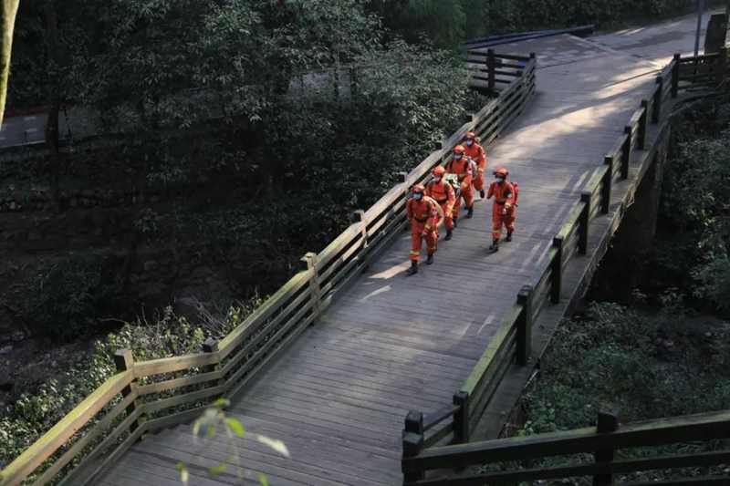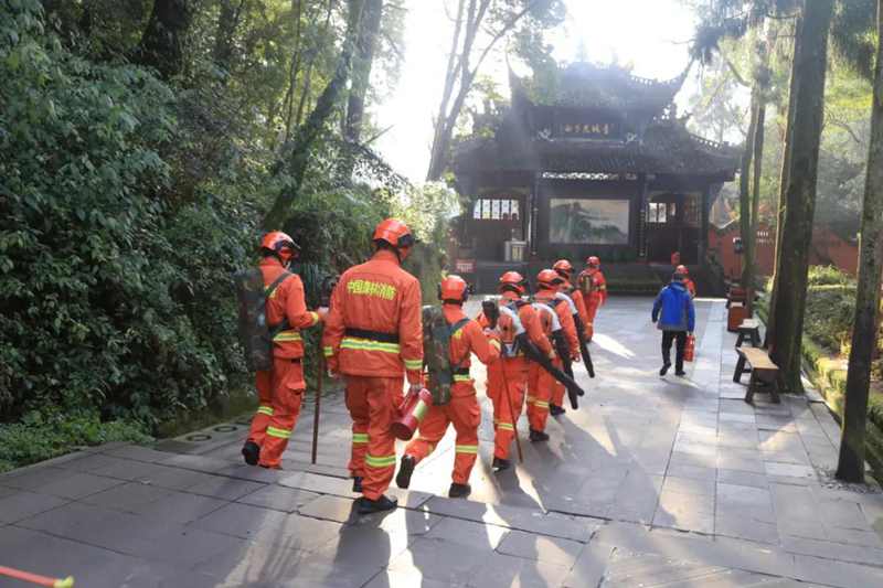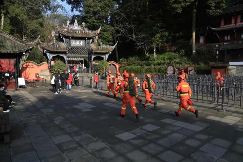 每次巡山,邓雨诚带领班级总是走固定的路线。沿登山栈道至山顶的老君阁,折回时坐索道进行空中巡护,全长大约7.5公里。自2005年成都市森林消防大队开始靠前驻防青城山,16年时间里,换了一茬又一茬的指战员,但使命和责任没有改变,仍每天行走在保护青城山郁郁葱葱的崎岖山路上。