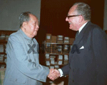 Le 10 juillet 1972, le président Mao Zedong a rencontré le ministre français des Affaires étrangères Maurice Schumann, à Zhongnanhai, Beijing.plus