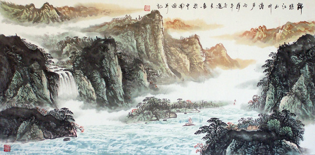 吴进良作品 《锦绣江山听涛声》