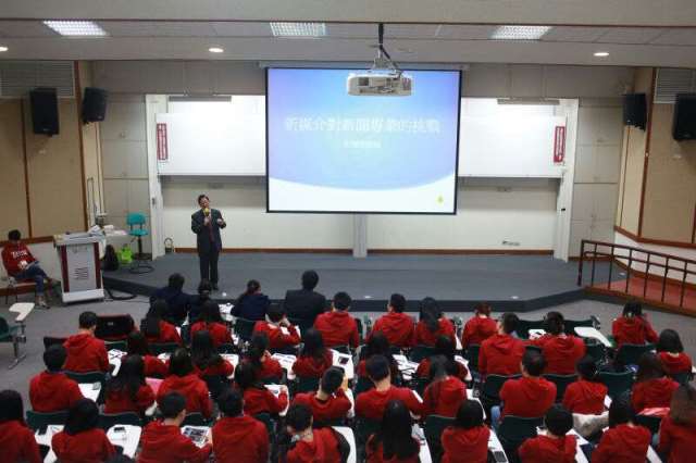 新闻营师生认真听取世新大学新闻学系教授兼新闻传播学院院长彭怀恩的主题讲座 陈建平摄