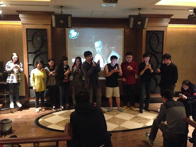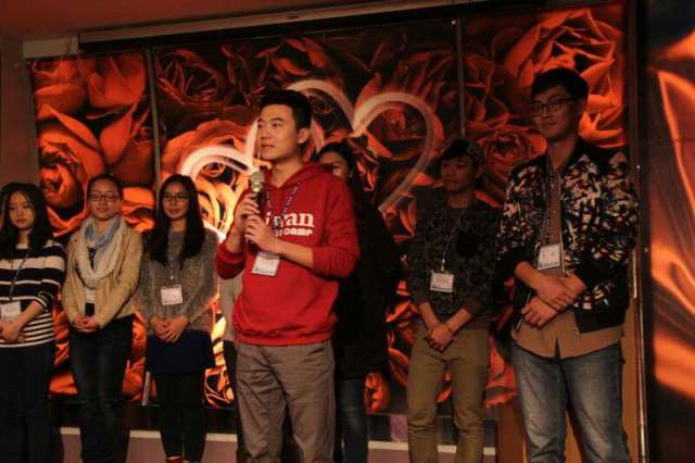 新闻营师生在欢迎晚宴上做自我介绍 陈建平 摄