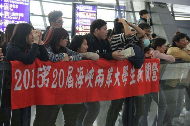新闻营台湾师生在机场焦急地等待大陆师生的到来 陈建平 摄
