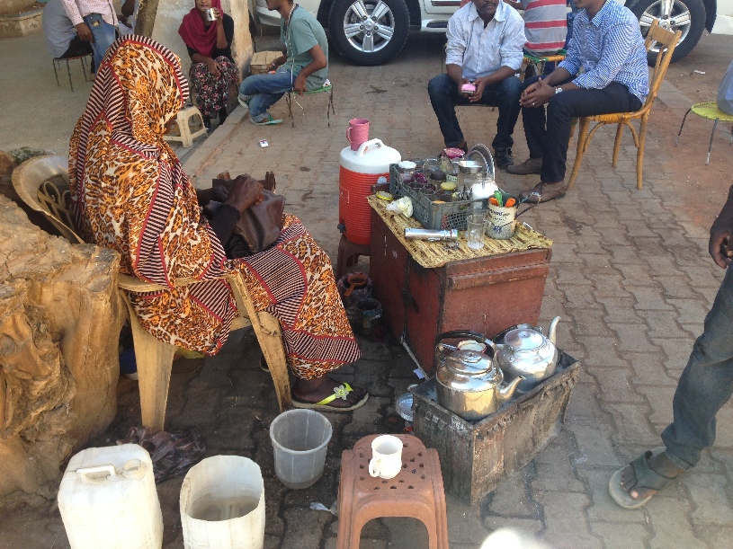 摆茶摊的苏丹妇女,着装是当地传统特色