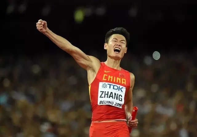 2015年8月29日,中国队选手张培萌冲过终点线后振臂欢呼。当日,2015年国际田联世界田径锦标赛男子4X100米接力决赛在北京国家体育场“鸟巢”举行,中国队以38秒01的成绩获得银牌。