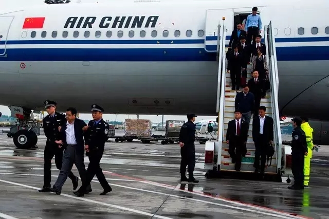在检察官和公安人员的押解下,红色通缉令2号人物李华波走下CA976次航班的旋梯,这是全国检察机关开展职务犯罪国际追逃追赃专项行动中首个成功的国际执法合作案件,也是反腐败囯际追逃追赃“天网”行动的又一重大战果。