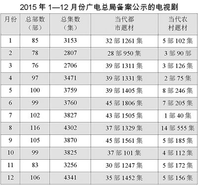 2015年国家新闻出版广电总局备案公示的当代农村题材和当代都市题材电视剧数量对比 制表:韩业庭