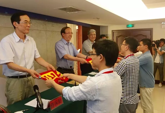 中宣部、中国记协、陕西省有关领导为参加活动的4个小组授旗