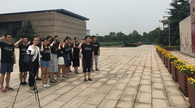 国新班党支部全体成员在南湖革命纪念馆的宣誓墙下宣誓