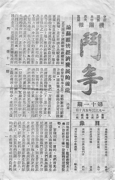 《斗争》报是中国共产党苏区中央局机关报,1933年创刊。