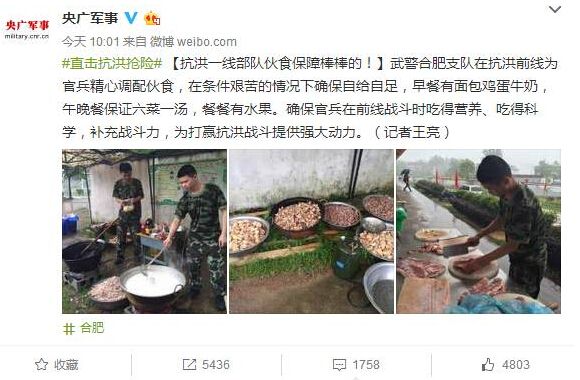 抗洪官兵如此辛苦,真的只有“泥水馒头”吃吗?该微信号认为“央广打了央视的脸”,因为@央广军事 早前已经发布过报道,“一线部队的伙食保障棒棒的!”