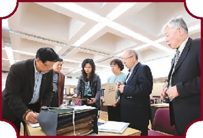《筑梦路上》总导演夏蒙(左)在俄罗斯查看红色档案