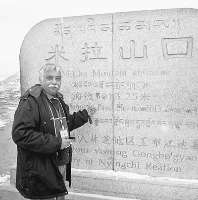 巴基斯坦联合通讯社前驻华记者马苏德·萨塔尔·汗在西藏米拉山口留影。资料图片