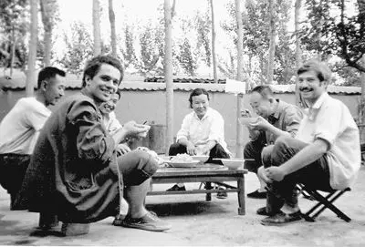 1976年,在北京留学的约尼·埃林(右一)与法国同学(左一)一起去农民家里半工半读。