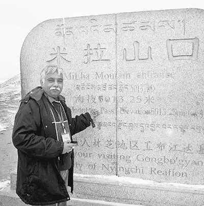 巴基斯坦联合通讯社前驻华记者马苏德·萨塔尔·汗在西藏米拉山口留影。