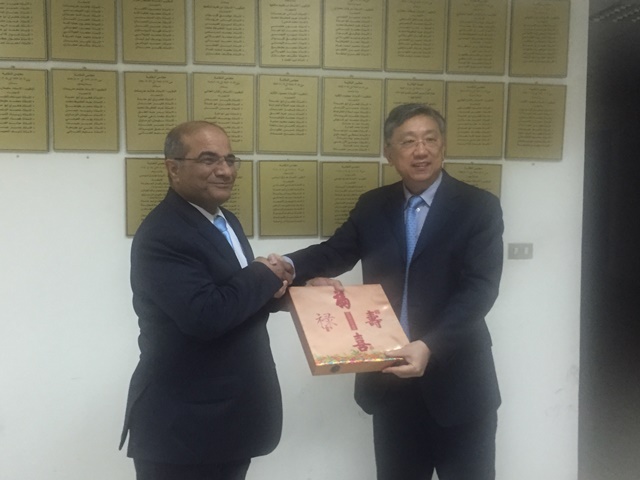 代表团向约旦记协主席塔里克•穆曼尼赠送纪念品 张业亮 摄