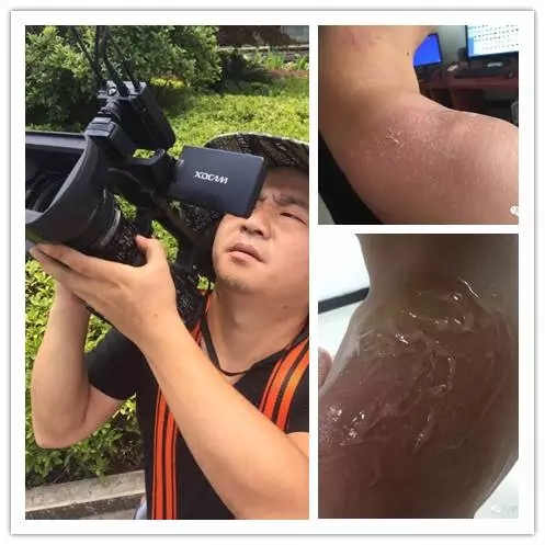 6月20日,央视江西记者站技术颜蔚然正陪妈妈逛街,听说溃堤了就直奔现场了。他来不及换衣服,穿的是洞洞鞋,结果几场直播做下来,身上被晒伤不算,脚也被晒成了洞洞脚,脖子被晒脱皮。