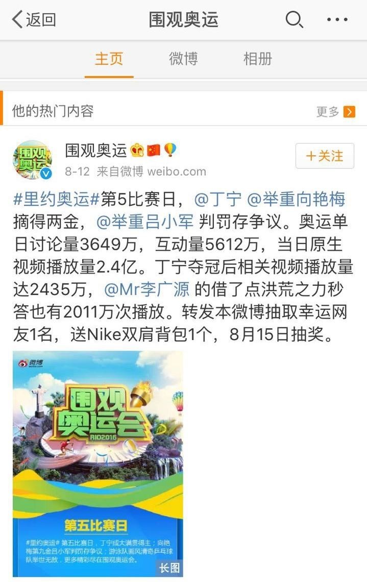 新浪坐拥微博渠道,主打“社交奥运”,微博、门户、秒拍等渠道组成新浪奥运内容产生与分发的重要矩阵。