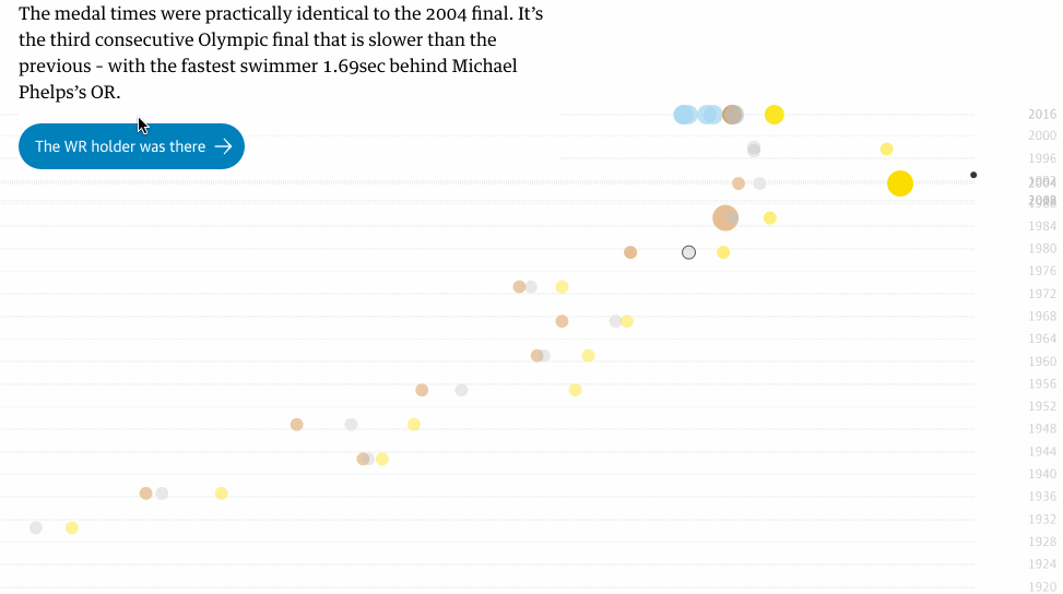 虽然目前《卫报》数据新闻可视化团队只涉足了游泳比赛的制作,但该团队负责人Gonzalez表示他们还会制作体操比赛的数据分析作品,并随着比赛的深入涉足更多项目。