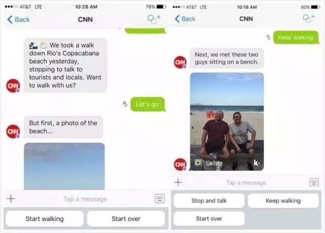 今年里约奥运会,CNN尝试让记者运用Facebook messanger(一种社交聊天软件)和Kik等平台与用户进行互动的方式来报道奥运。