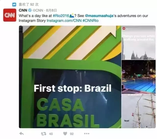 这些记者的动态将会同步在CNN的官方奥运Twitter上。Masuma Ahuja也是这些记者中的一员,她的工作就是在Kik和Facebook Messanger上和她的粉丝互动,然后向大家展示他们想要看到的里约。她认为这以后会演变成CNN报道的一种常规方式。